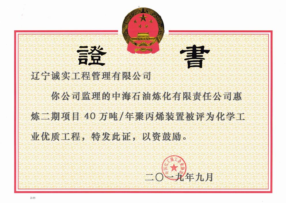 2019年化學(xué)工業(yè)優(yōu)質(zhì)獎(中海油惠煉二期項目40萬噸/年聚丙烯裝置)