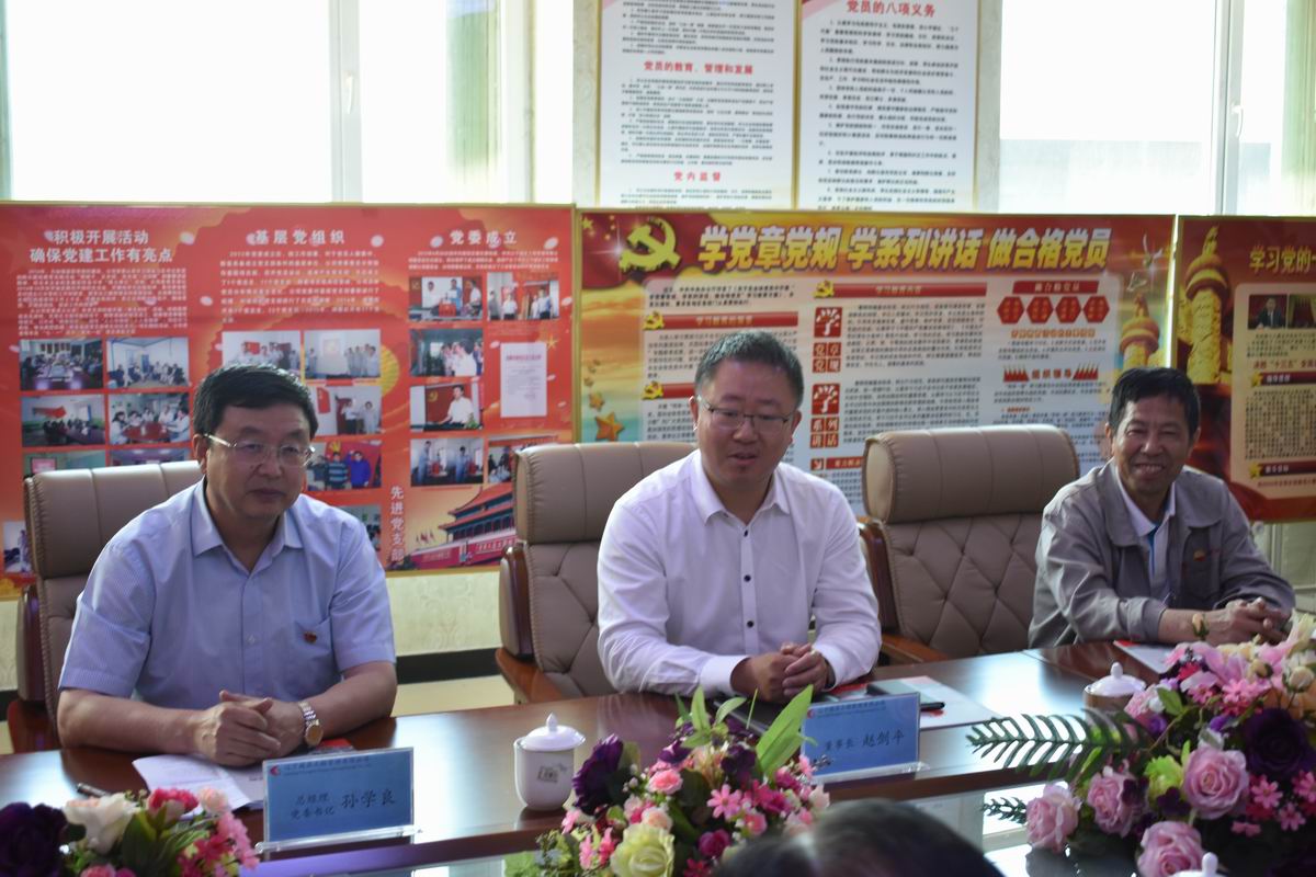 中共撫順市委常委、組織部長(zhǎng)劉非同志在聽(tīng)取了公司黨委書記孫學(xué)良做的關(guān)于“兩學(xué)一做”學(xué)習(xí)教育常態(tài)化制度化工作情況匯報(bào)后,指出非公企業(yè)黨建工作開(kāi)展的好,不僅可以讓黨員有歸屬感,感受黨組織的溫暖,發(fā)揮黨員的先鋒模范作用,更能增強(qiáng)企業(yè)的核心競(jìng)爭(zhēng)力,提升非公企業(yè)吸引力。要充分發(fā)揮好非公企業(yè)黨組織在企業(yè)中的戰(zhàn)斗堡壘作用,形成黨建與發(fā)展的雙贏格局和良性循環(huán),為加快撫順轉(zhuǎn)型振興做貢獻(xiàn)。公司董事長(zhǎng)趙劍平一同聽(tīng)取了匯報(bào),并對(duì)撫順市委組織部領(lǐng)導(dǎo)的到來(lái)表示熱烈歡迎。撫順市委組織部領(lǐng)導(dǎo)對(duì)我公司的黨建工作給予了極高的肯定。