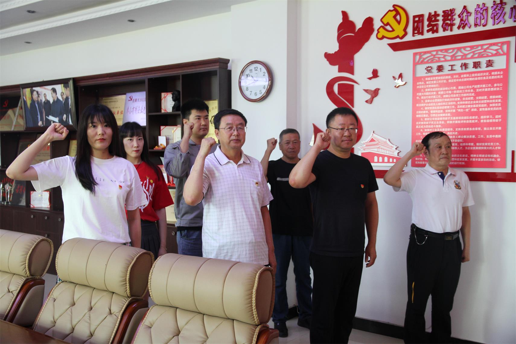 7月1日上午10;30,我公司黨委組織機(jī)關(guān)支部和待崗黨支部黨員同志開展重溫入黨誓詞活動(dòng)。